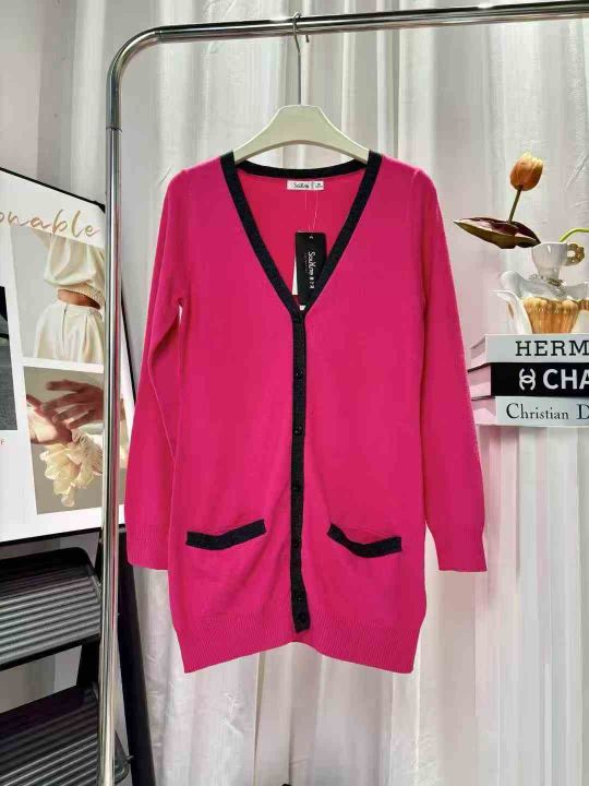 3500件上市公司品牌春季中长款V领针织开衫,尺码:M~...