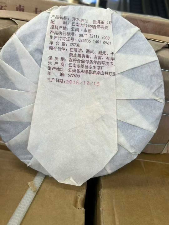 乔木茶王,手工特制熟普茶饼。2015年生产,7饼/提,一...