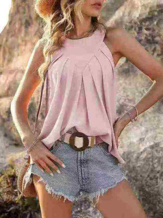 欧美女装裙褶皱纯色吊带/亮面女士T恤 上衣,数量 215 ...