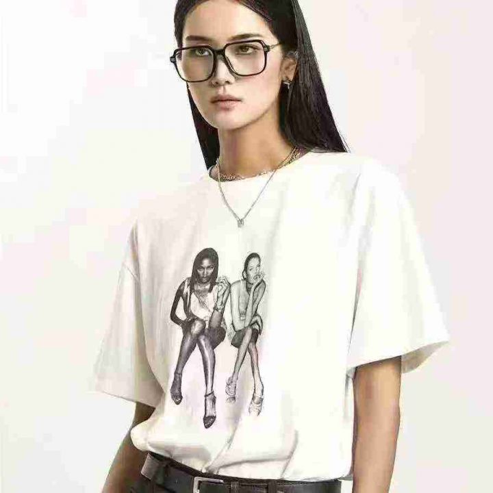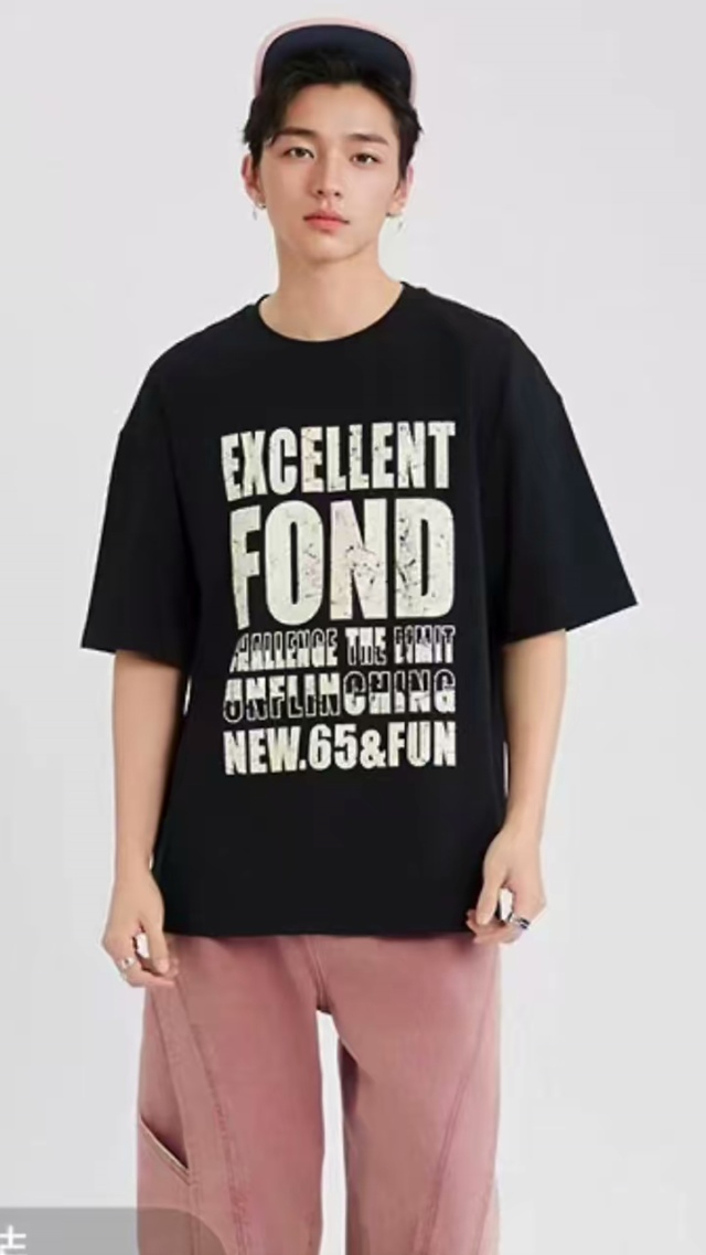 时尚宽松洋气印花短袖T,图片款,领口包边到肩颈,品质好,350件左右,全清...