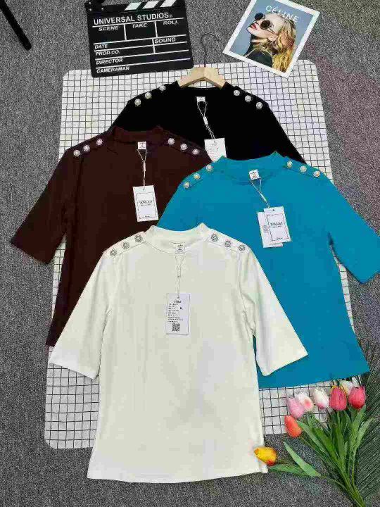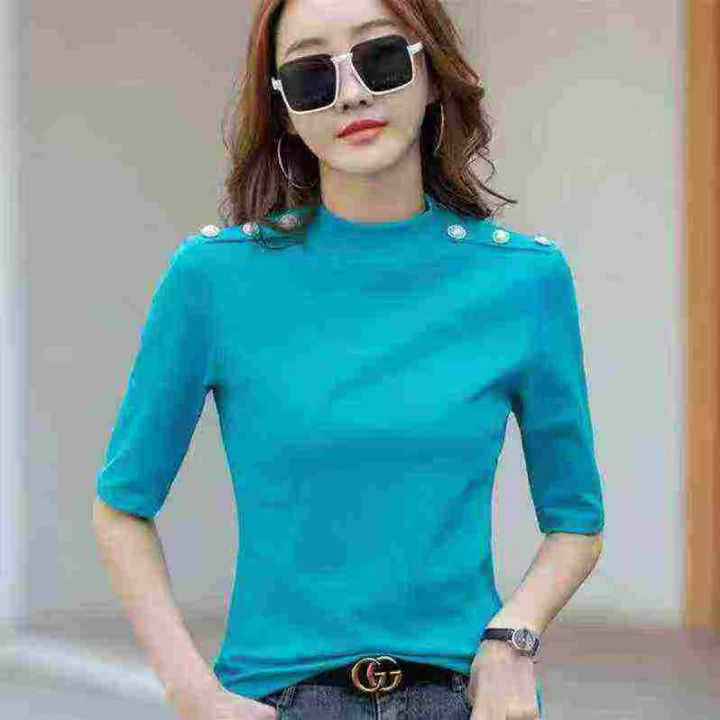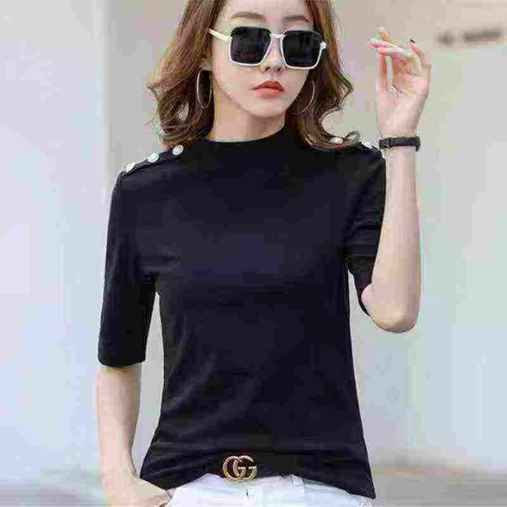 1300件五分袖t恤女修身欧洲站女装2025春新款洋气半高领纯棉显瘦打底衫,整款4个颜色,独立包装带吊牌,码数S一3XL,全清10.8分货加1