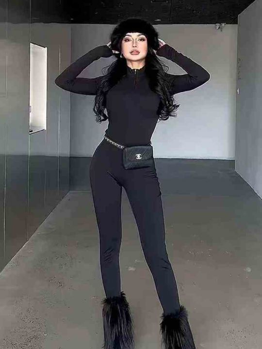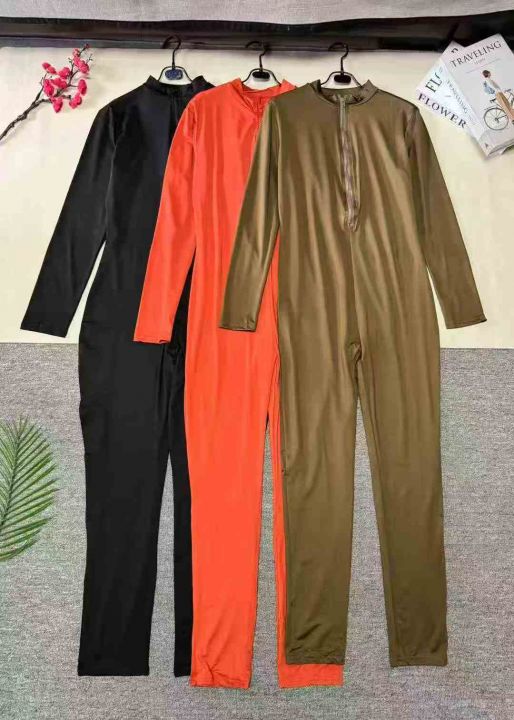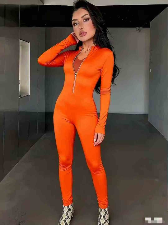 欧美ins风纯欲性感气质拉链半开领长袖连体衣裤,整款三色,数量170条左右,码数S-2XL,高弹力,品质好,有独立包装。