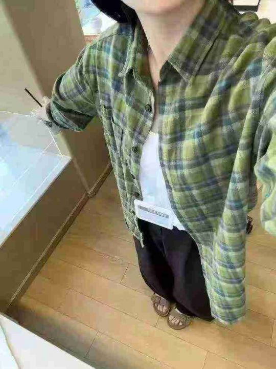 早春格子衬衫1434件9.5,宽松慵懒风,弧形下摆,复古...