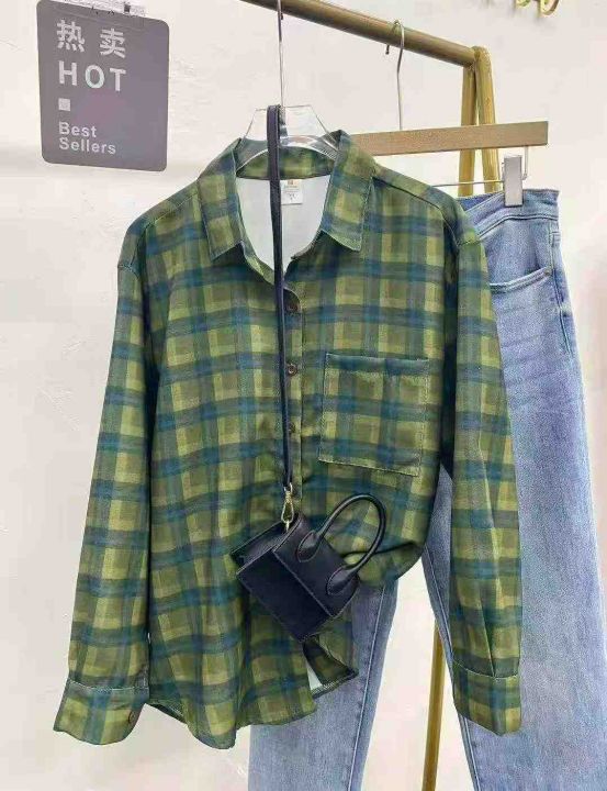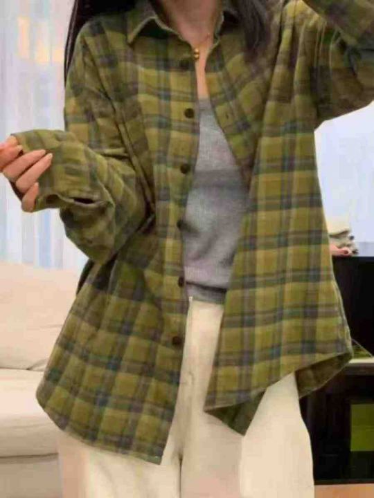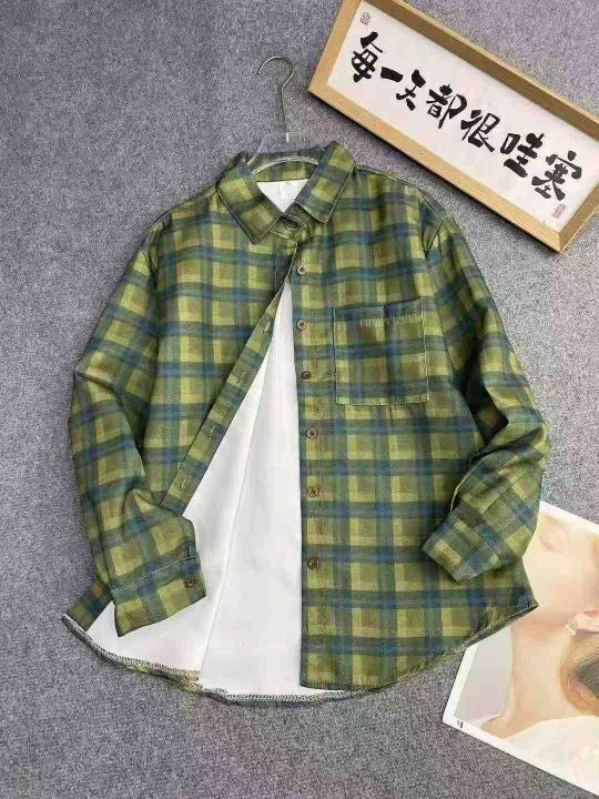 早春格子衬衫1434件9.5,宽松慵懒风,弧形下摆,复古...