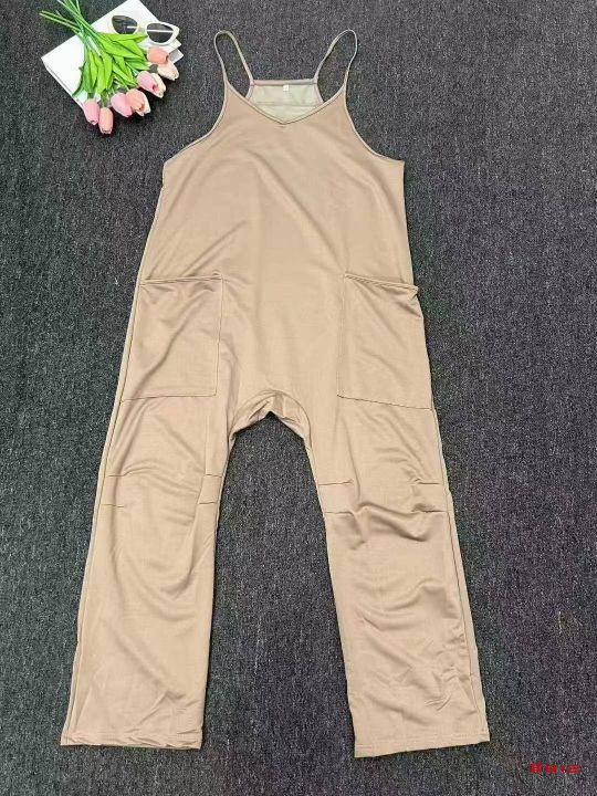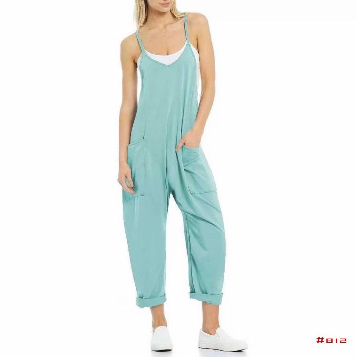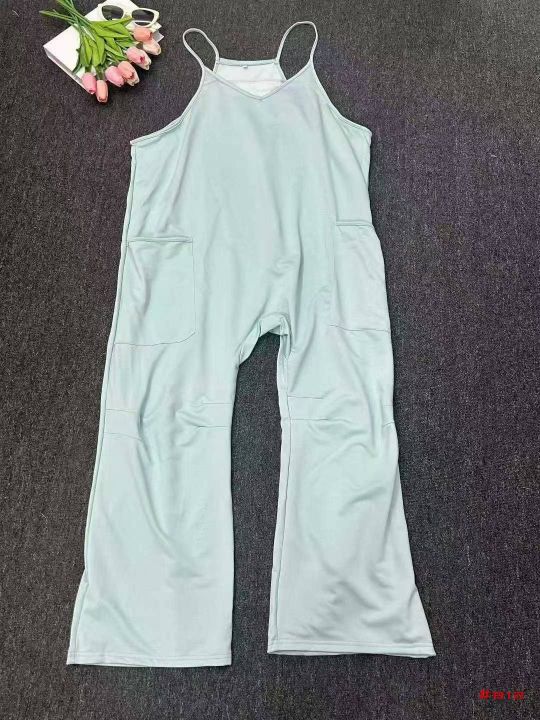 欧美大码V领胖MM浅绿色口袋宽松休闲吊带连体裤,独立包装,700件,S-2XL,全清6.8分货➕1@_@