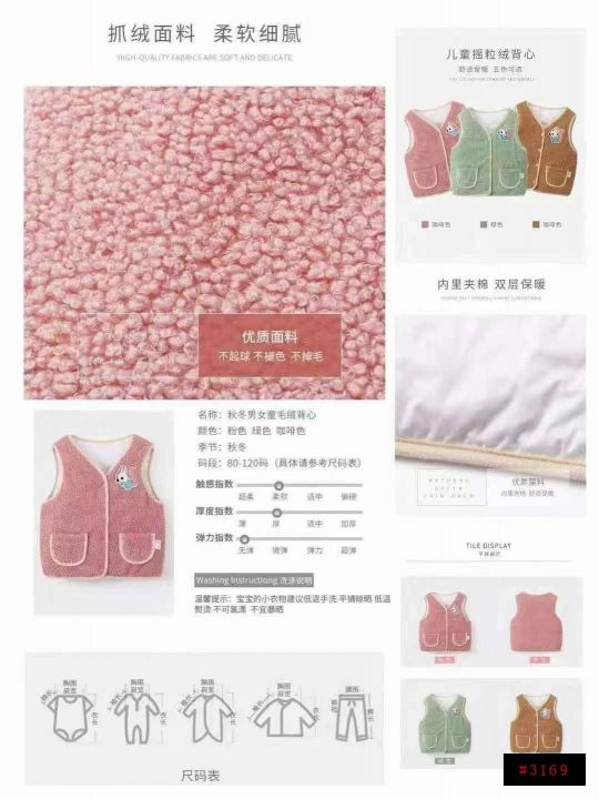 儿童马甲中小童男女童,秋冬泰迪绒加棉,背心保暖,独立包装,码数:80-100码,数量4200件,全清4.8,分货➕1@_@