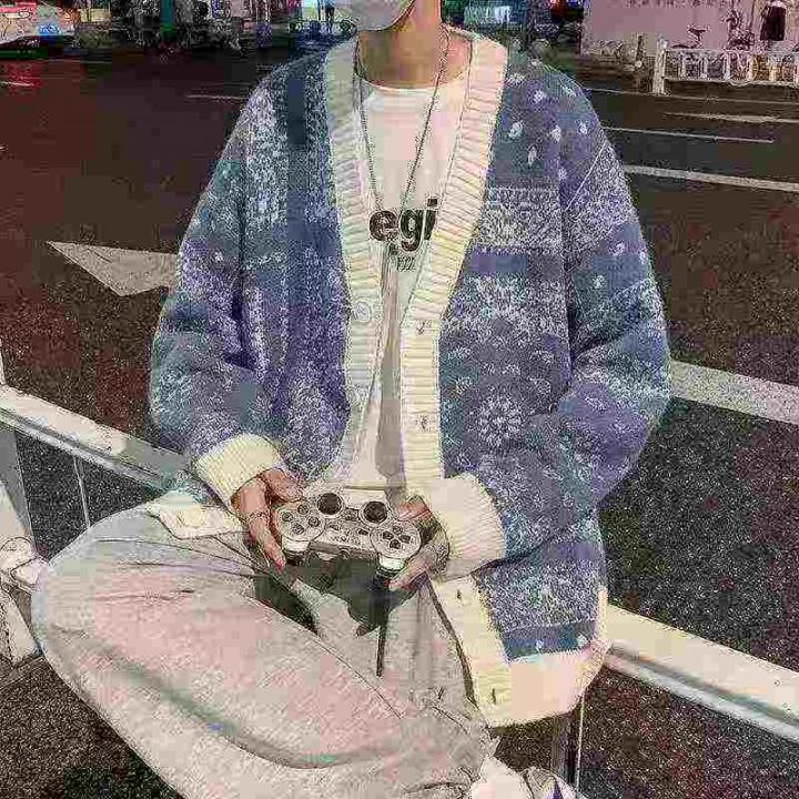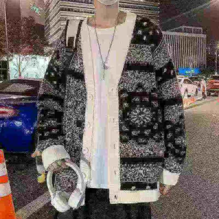 男士春秋针织开衫外套时尚港风宽松大版型男装休闲帅气潮男毛衣,独立包装带吊牌,数量626,尺码ml