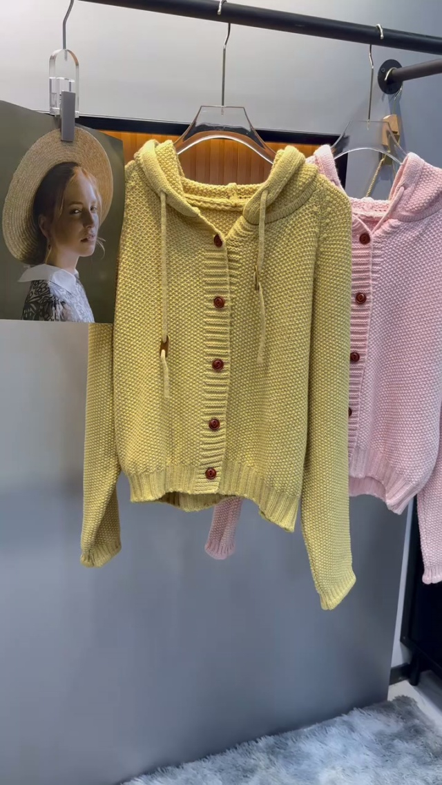 25.8甜美韩系慵懒风连帽抽绳开衫毛衣针织外套 均码 两个色[啤酒]嫩黄色和...