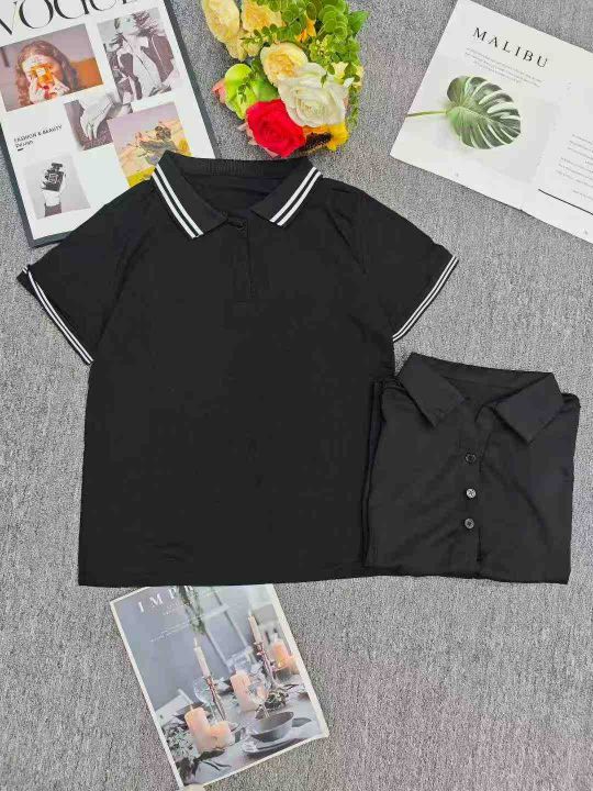 电商仓回收75件百搭经典黑色女士休闲Polo衫短袖T恤,码数S-XL。简约时尚休闲,面料有弹性。有独立包装,数量有限,先到先得!