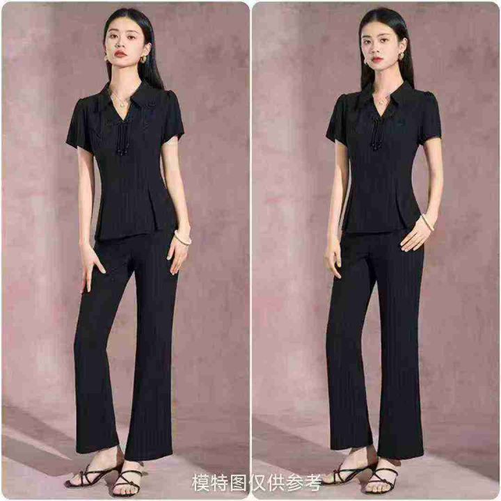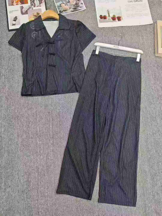 电商仓回收519套气质国风改良新中式条纹翻领短袖长裤套装,码数2-4-6码。面料柔软有弹力,款式新颖,货品干净,有独立包装,分货➕0.5。 货号:24862
