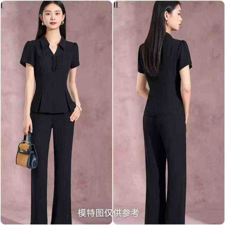 电商仓回收519套气质国风改良新中式条纹翻领短袖长裤套装,码数2-4-6码。面料柔软有弹力,款式新颖,货品干净,有独立包装,分货➕0.5。 货号:1323