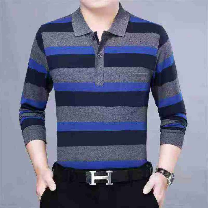 电商仓回收4450件经典爸爸装条纹翻领polo衫,码数L-3XL。面料柔软舒适有弹性,应季节好货,全部独立包装。分货➕1。 货号:24862