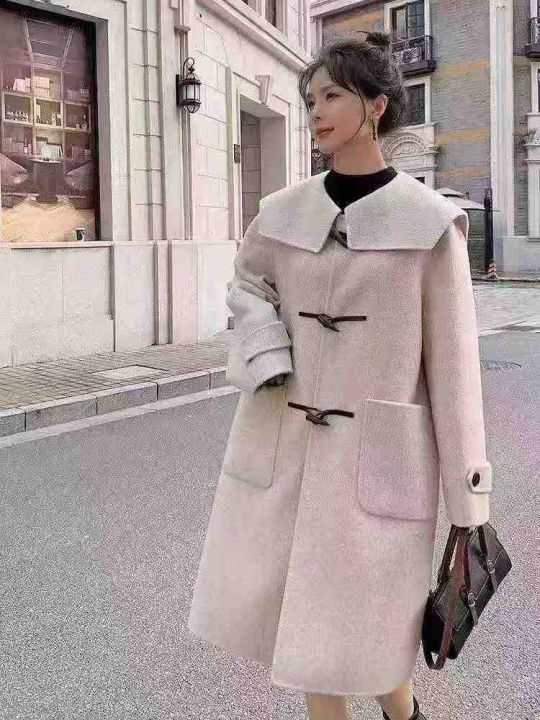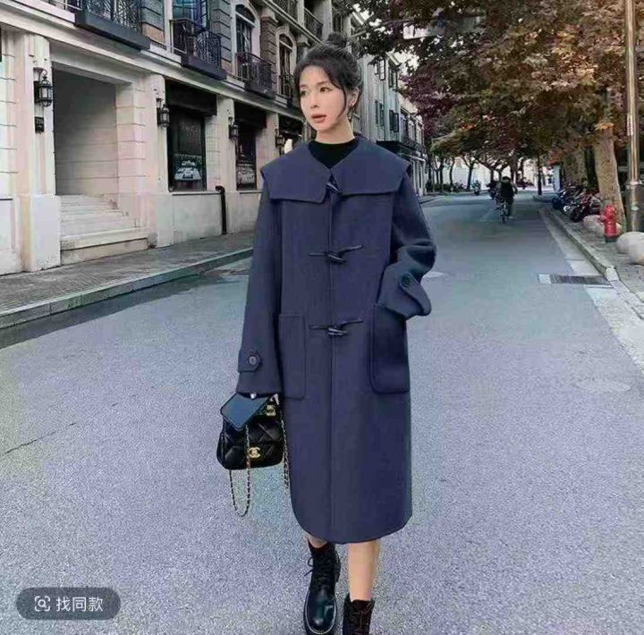 340件海军领毛呢外套女2025秋冬新款学院风中长款韩版宽松牛角扣呢大衣,码数S—XL,独立包装,双面妮,全清24.8分货加1