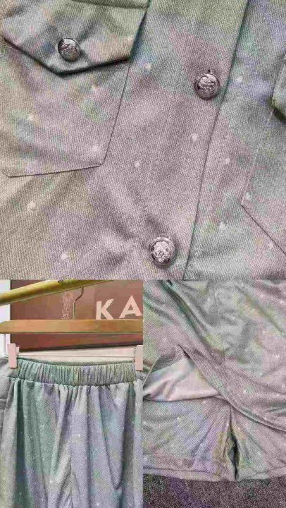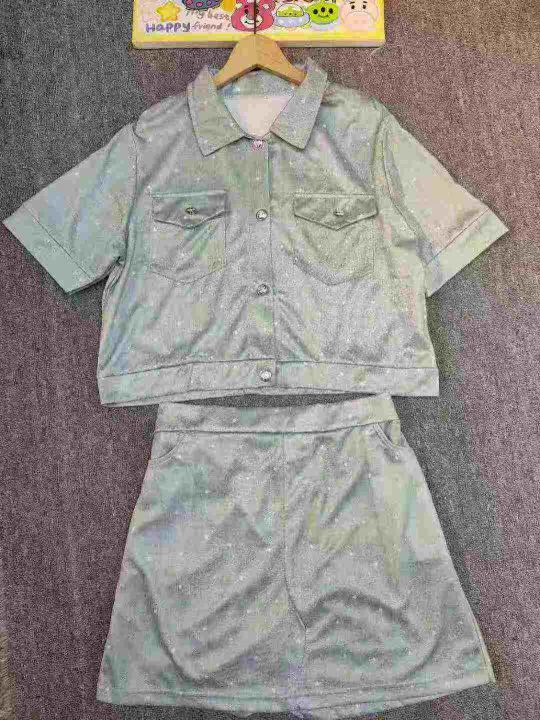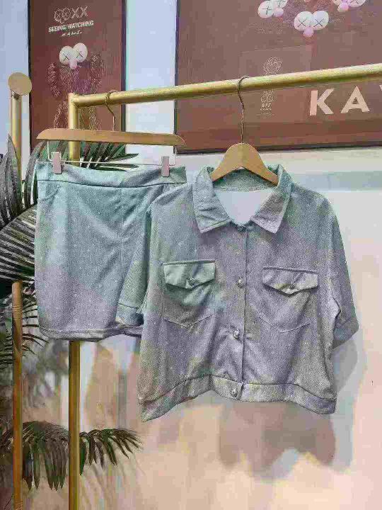 1270套时尚靓妹女装夏季休闲套装裤裙 上衣纽扣解 半松紧腰裤裙有口袋,单款单色 码数2-6码(M-3XL)独立包装。