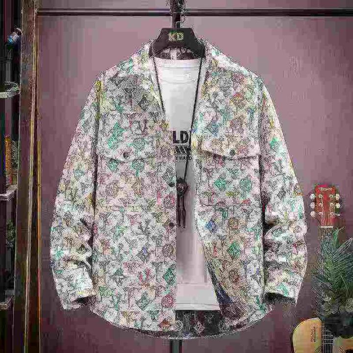129件大码肥佬男装 潮牌vintage复古编织提花满印长袖衬衫男春秋款网红宽松大版翻领衬衣外套,单款单色 面料厚实,码数7XL-8XL码(200-300斤可穿),独立包装带吊牌。