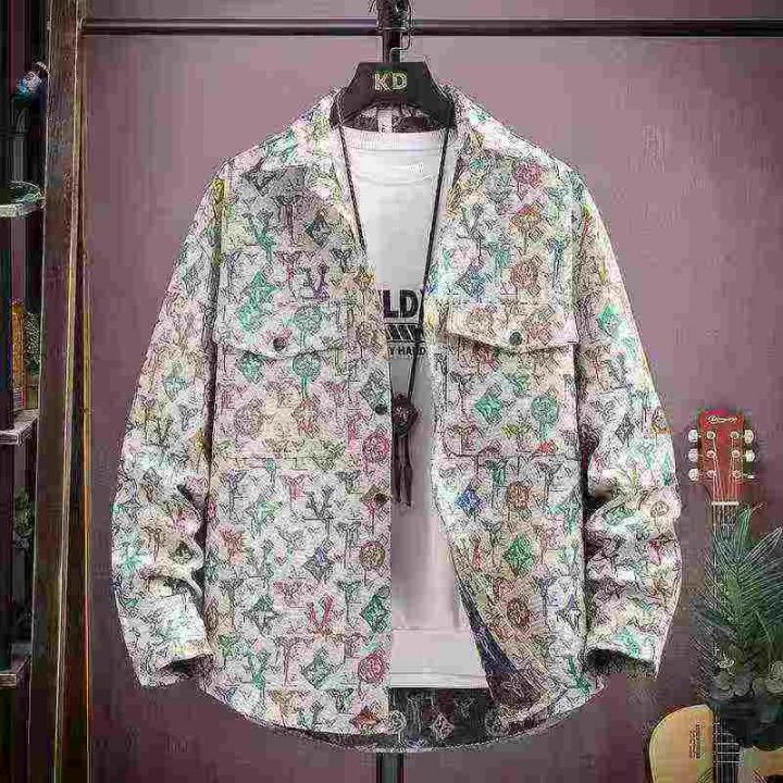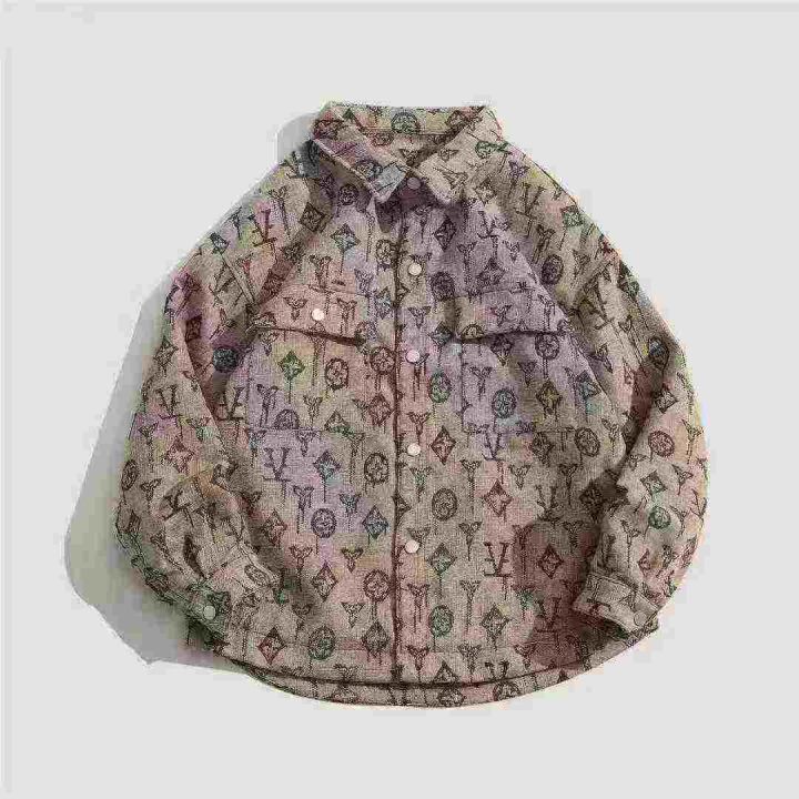 129件大码肥佬男装 潮牌vintage复古编织提花满印长袖衬衫男春秋款网红宽松大版翻领衬衣外套,单款单色 面料厚实,码数7XL-8XL码(200-300斤可穿),独立包装带吊牌。