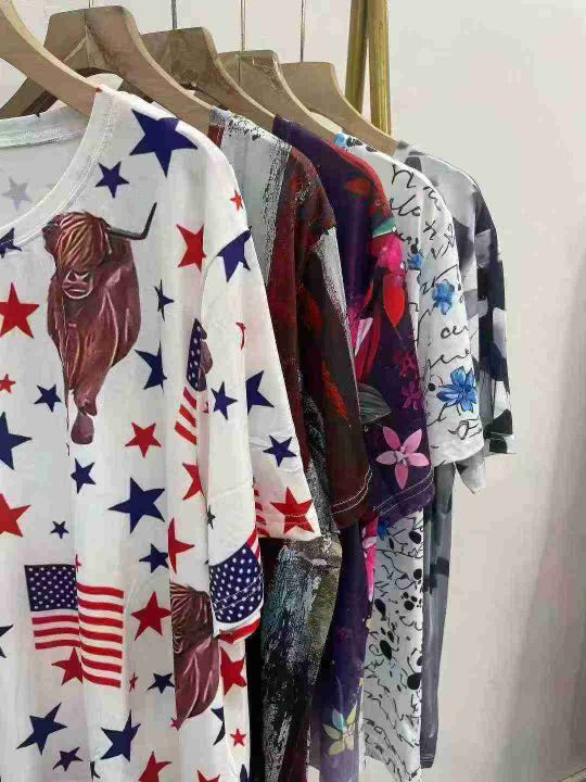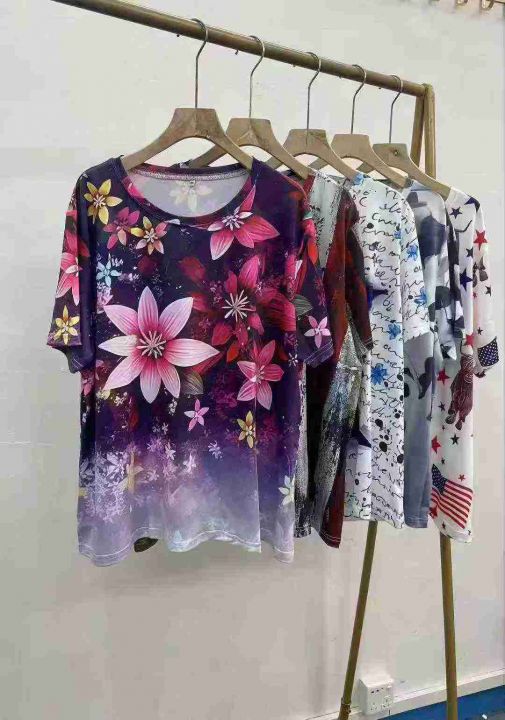 240件宽松休闲印花圆领短袖,面料柔软舒适,高弹力。1XL一4XL,独立包装.全清4.5