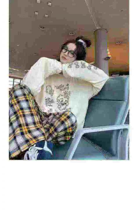全清价6.9元气质薄绒直筒格子裤宽松显瘦高腰秋裤,独...