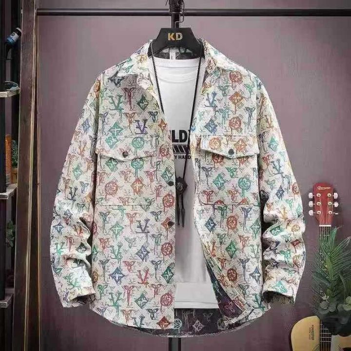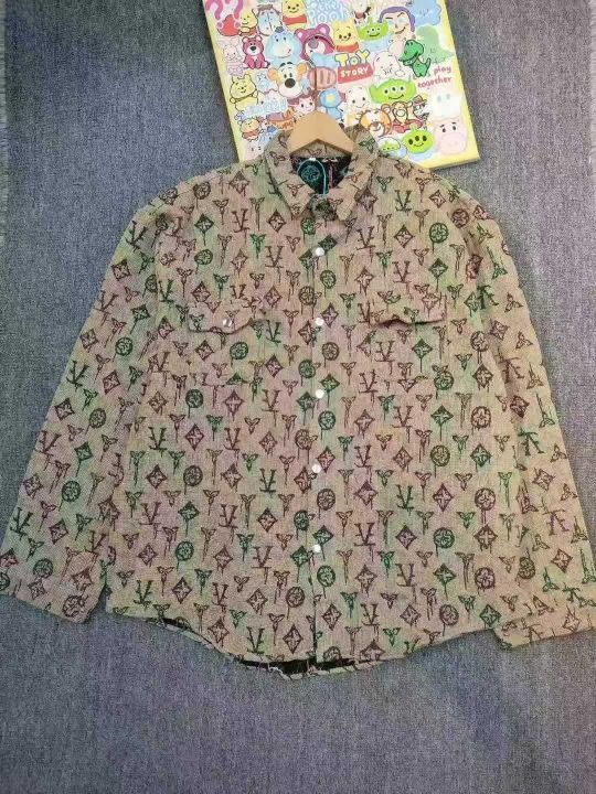 129件大码肥佬男装 潮牌vintage复古编织提花满印长袖衬衫男春秋款网红宽松大版翻领衬衣外套,单款单色 面料厚实,码数7XL-8XL码(200-300斤可穿),独立包装带吊牌。