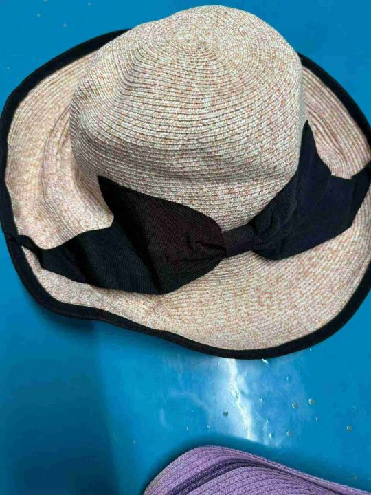 草帽圆顶遮阳清新蝴蝶结韩版卷沙滩防晒礼帽夏季时尚,独立包装,全清1.99