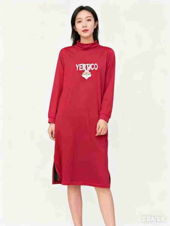 韩版学院风字母卫衣裙宽松休闲甜美长裙温柔长袖加绒连...