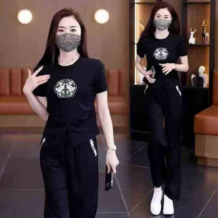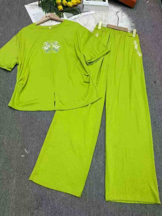 休闲运动套装女夏季新中式炸街时尚减龄洋气显瘦冰丝阔腿裤两件套,独立包装,码数2-6码,数量202套,货号1126#54。 货号:1323