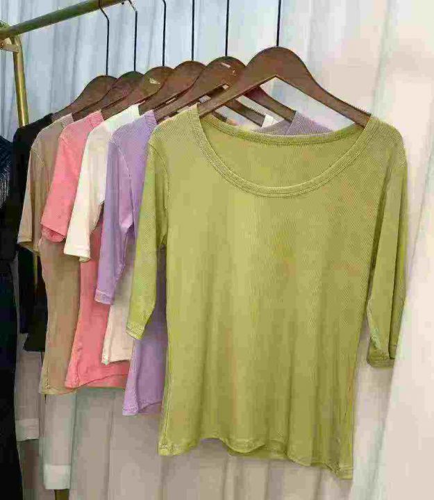 夏季新款五分袖U领螺纹t恤百搭修身显瘦时尚中袖打底衫994件,s~2XL独立包装,货品干净整洁,全清福利价6.9元,