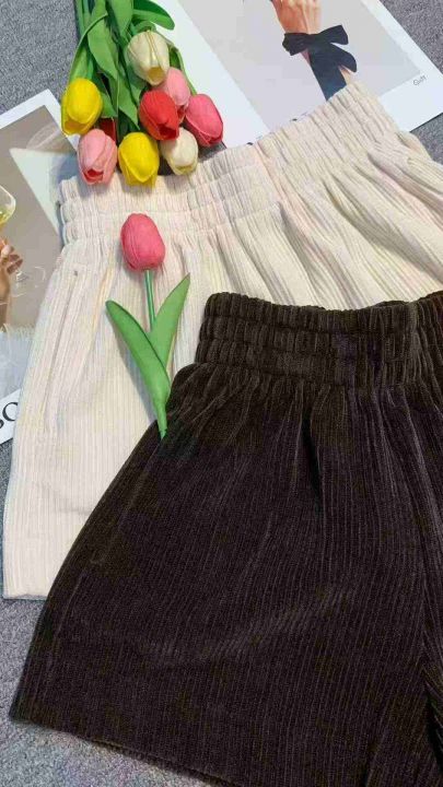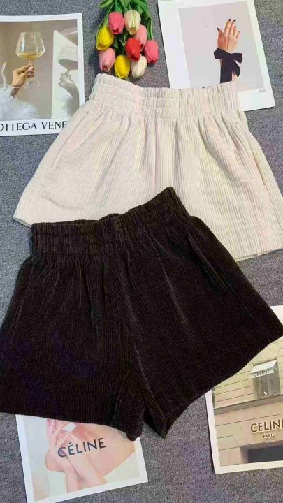 秋冬松紧腰设计遮肉显瘦灯芯绒短裤,[爱心]105件左右,单款两个色,码数M-L,穿80-120斤,万佳档口货,原包装️无瑕疵,[666]实体店品质