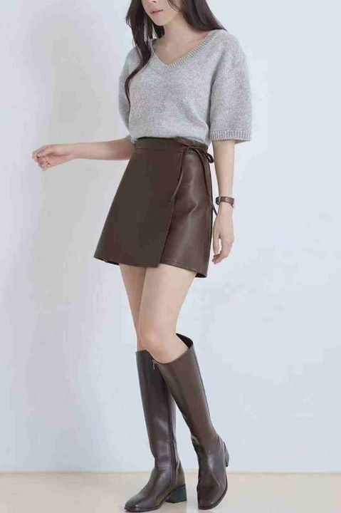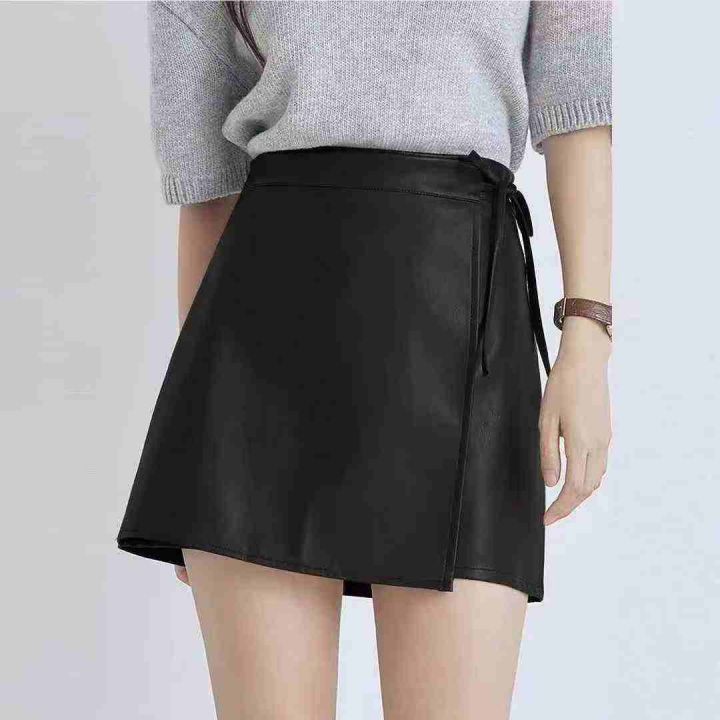 复古小众绑带设计感PU皮A字短裙,[爱心]40件左右,卡其色为主,码数S-XL,穿70-130斤,万佳档口货,原包装️无瑕疵,[666]实体店品质