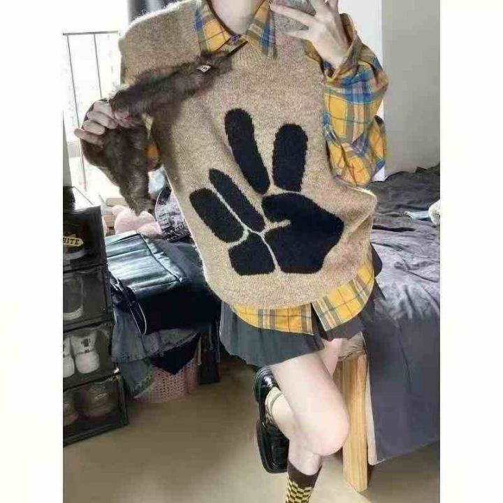 全清6.8元/清334件春秋新款情侣款绣花手势毛衣马甲,...