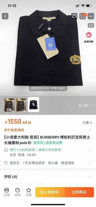 Burberry巴宝莉长袖polo衫精工刺绣,M~2XL码,680件❗...