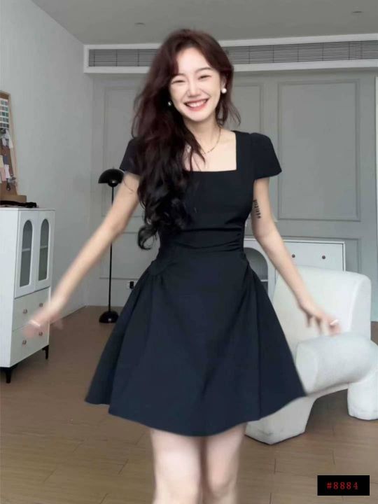 高级感赫本风方领收腰褶皱连衣裙,[爱心]1030件左右,S-M为主,码数S-XL,穿80-130斤,[666]工厂原包装瑕疵,分货加一@_@