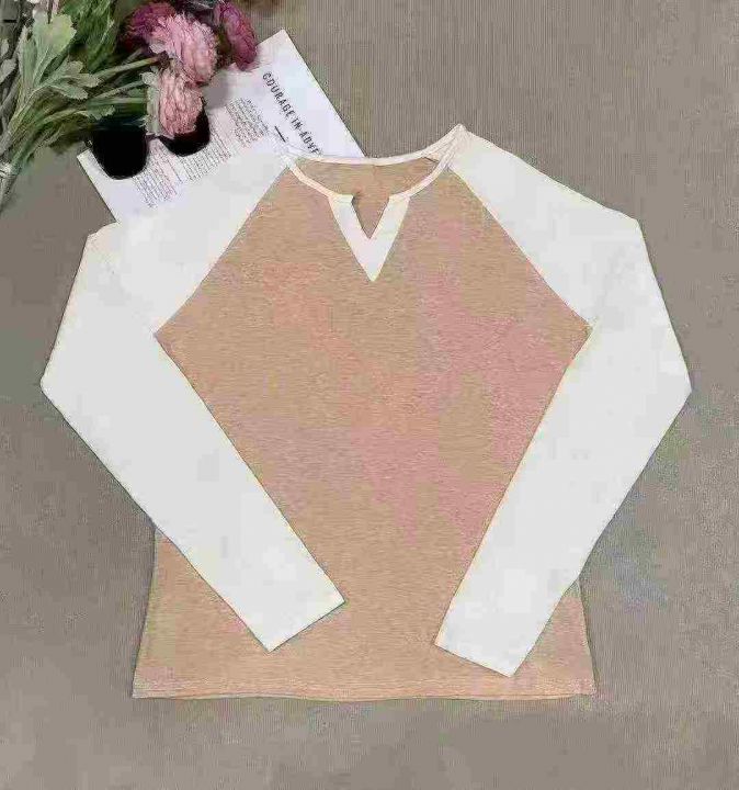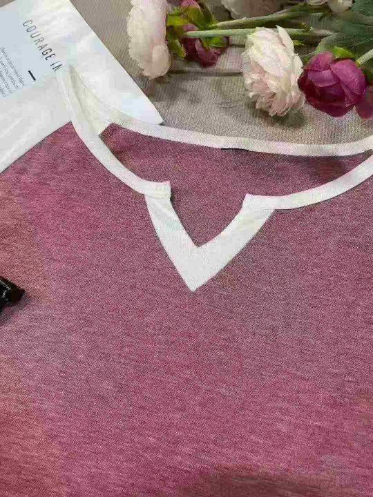 450多件辣妹撞色v领插肩袖时尚气质休闲百搭t恤上衣 ,...
