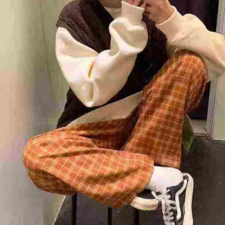 全清价6.9元气质薄绒直筒格子裤宽松显瘦高腰秋裤,独...