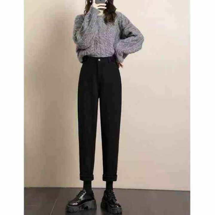 秋冬小脚毛呢裤设计烟管女磨毛英伦高腰显瘦休闲西装裤...