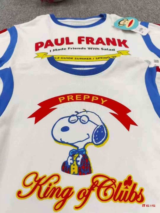 品牌童装个性logo短袖T恤,数量1000件左右,码数110--160,整款两个品牌(史努比、大嘴猴) 可分品牌出,后领包边,货品整洁质佳@_@