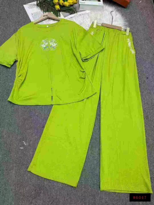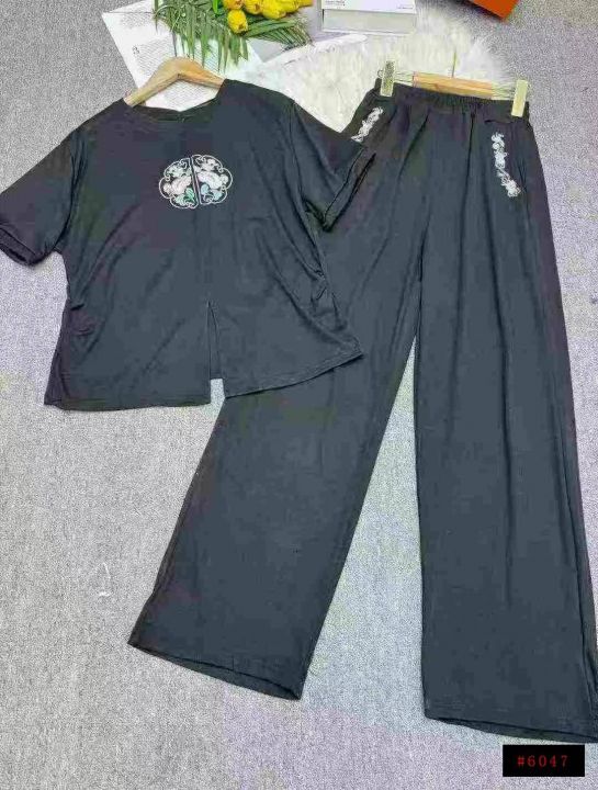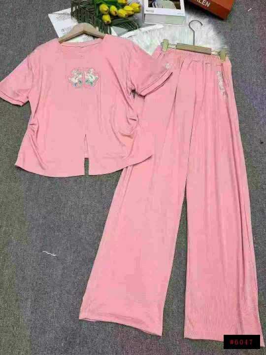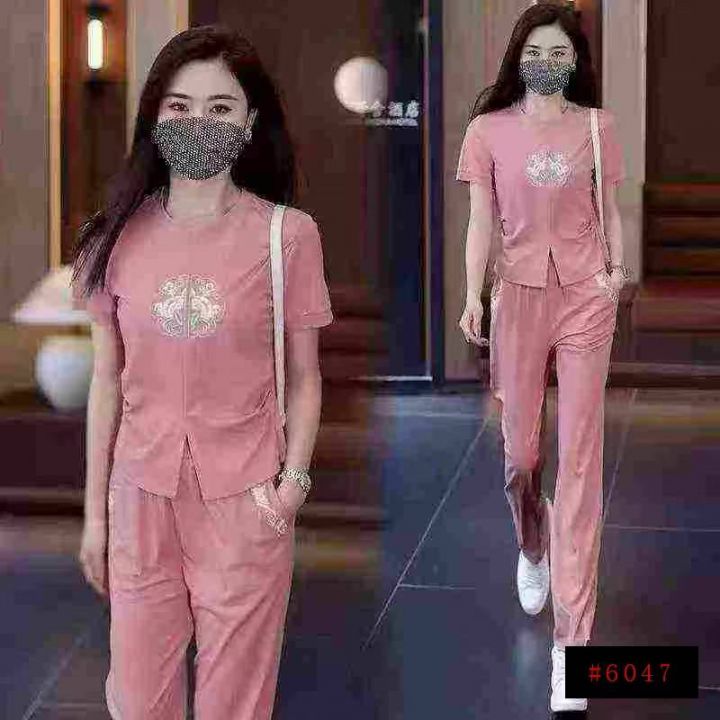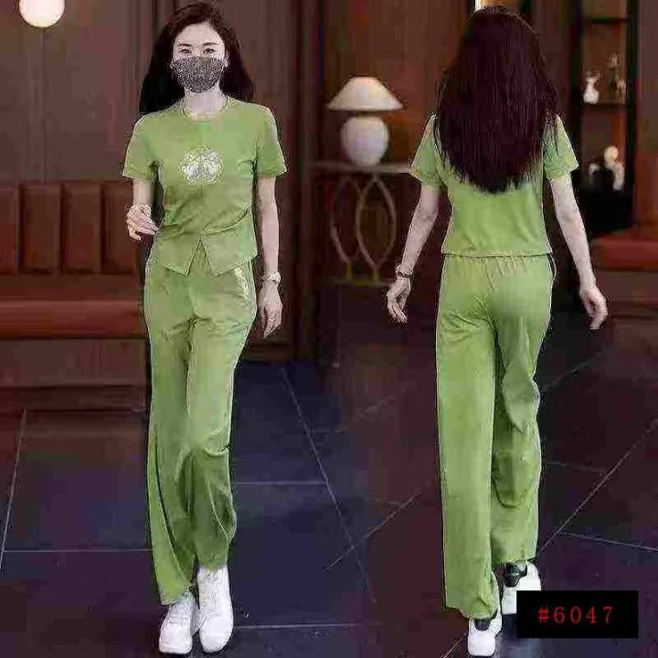 休闲运动套装女夏季新中式炸街时尚减龄洋气显瘦冰丝阔腿裤两件套,独立包装,码数2-6码,数量202套,货号1126#54@_@
