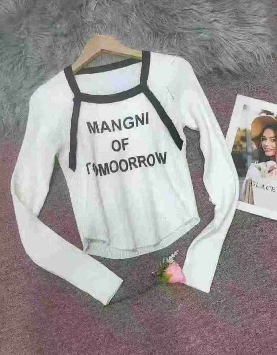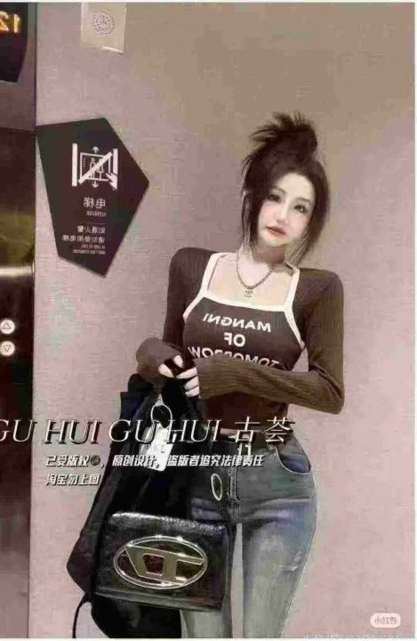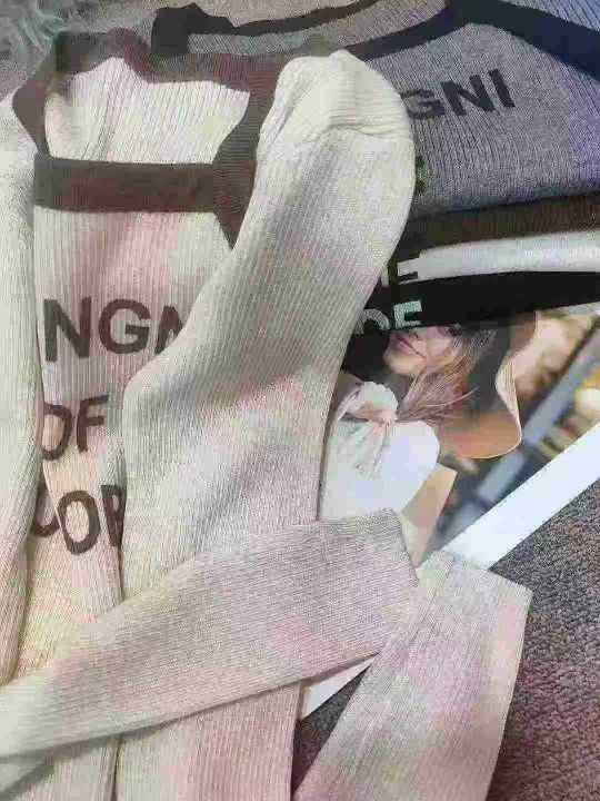 美式时髦拼色假两件方领长袖秋冬新款字母修身显瘦针织毛衣打底衫,品质很好,独立包装,均码,400件,清6.5,分➕5毛