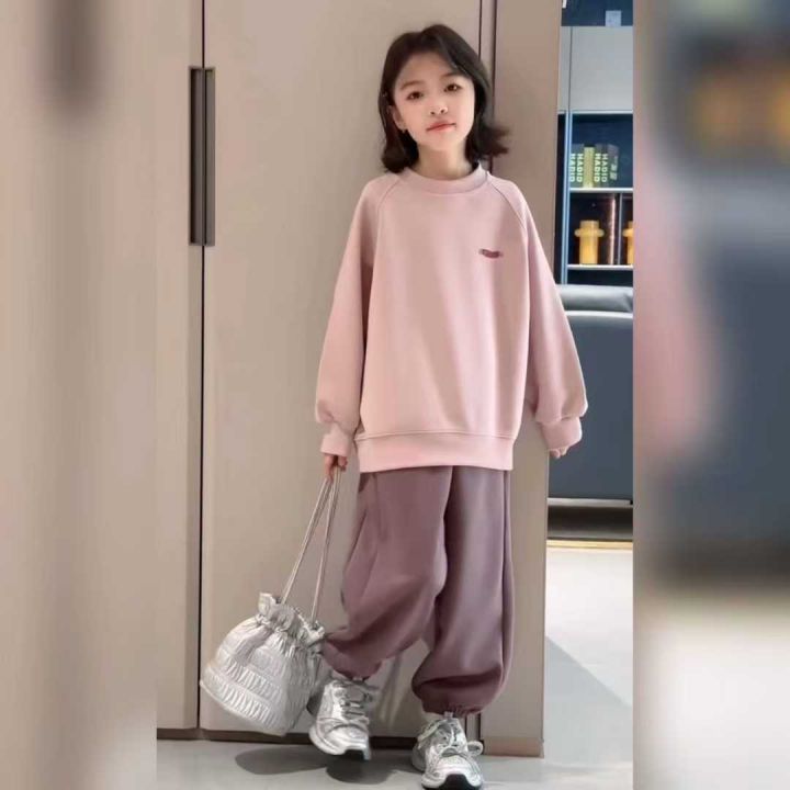 米妮哈鲁女童春秋季韩系卫衣套装2025新款女大童洋气上...