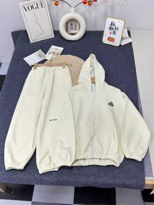 米妮哈鲁女童春秋季韩系卫衣套装2025新款女大童洋气上衣卫裤两件,其中连帽米色10套,数量130套,码数110-160,独立包装后领包边,全清10.8元