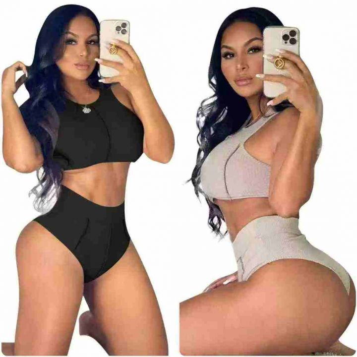 欧美时尚洋气性感背心两件套,整款多色,数量:633套左右,码数:S-2XL,高弹品质好,有独立包装。