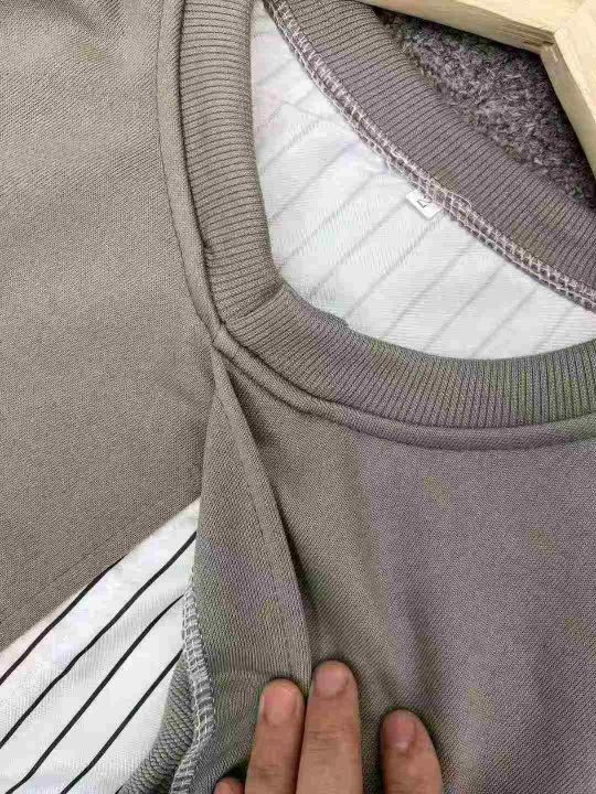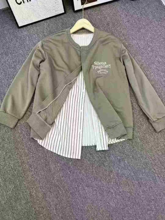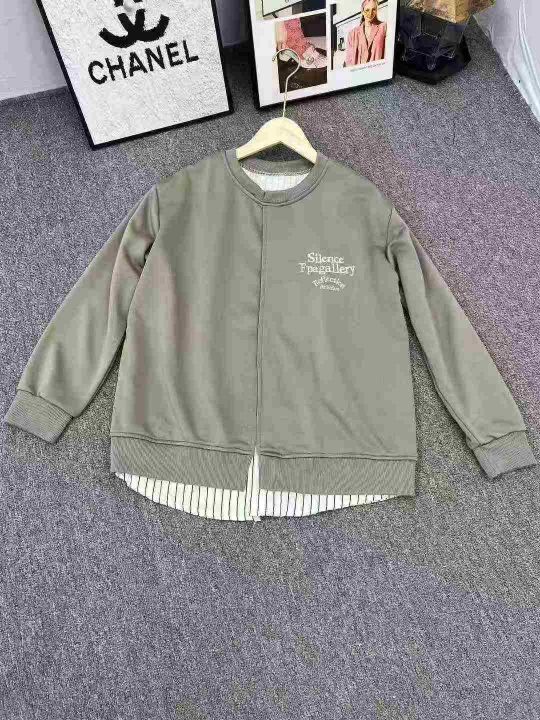 430件左右情侣款假两件套拼接刺绣圆领卫衣,单款单色,码数1-4。