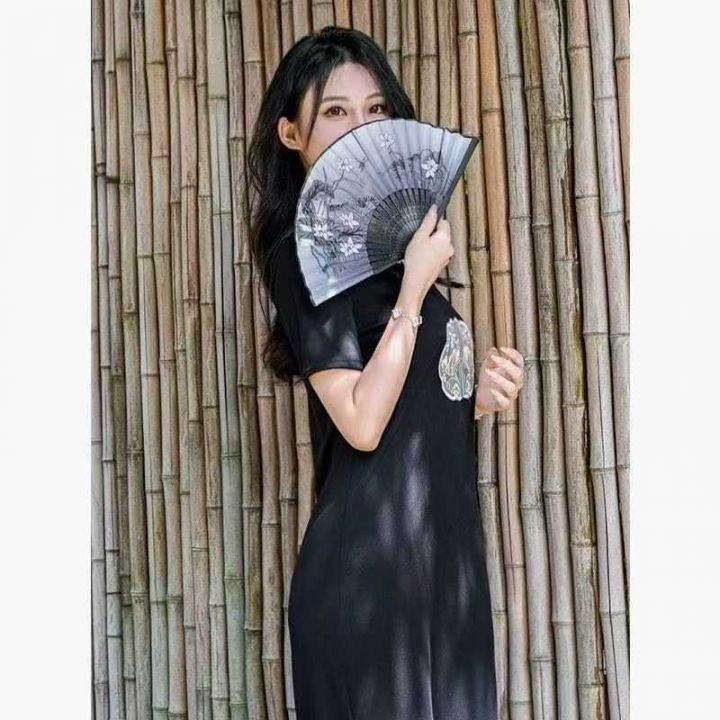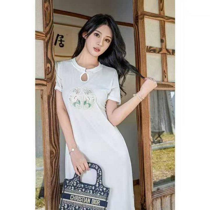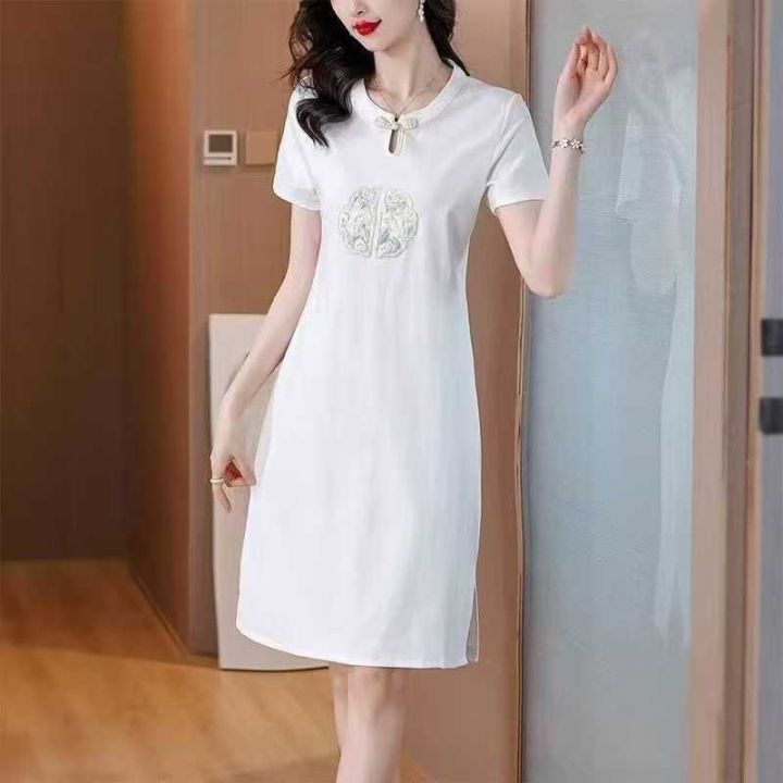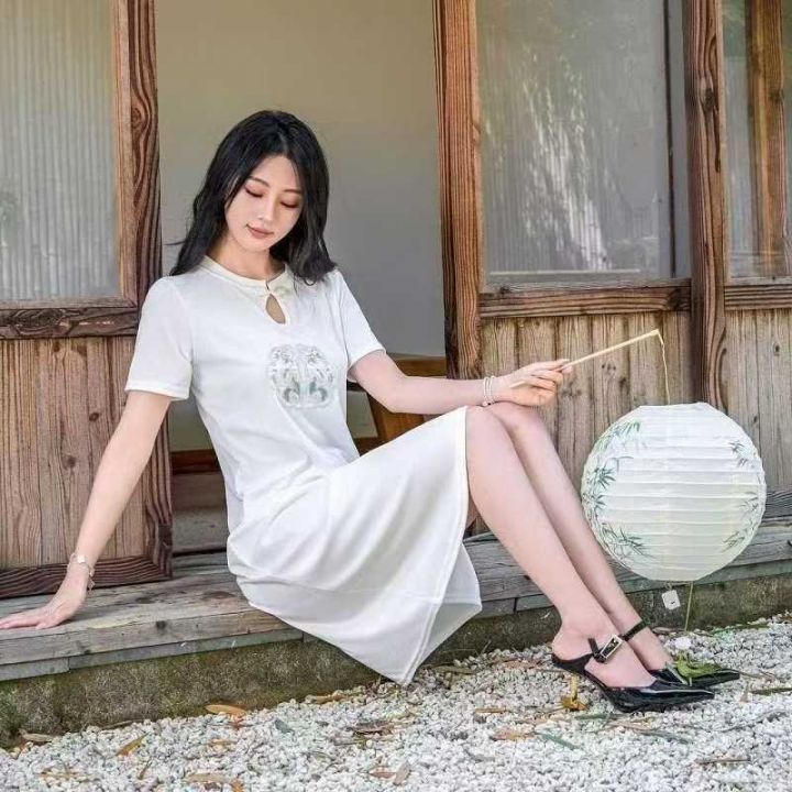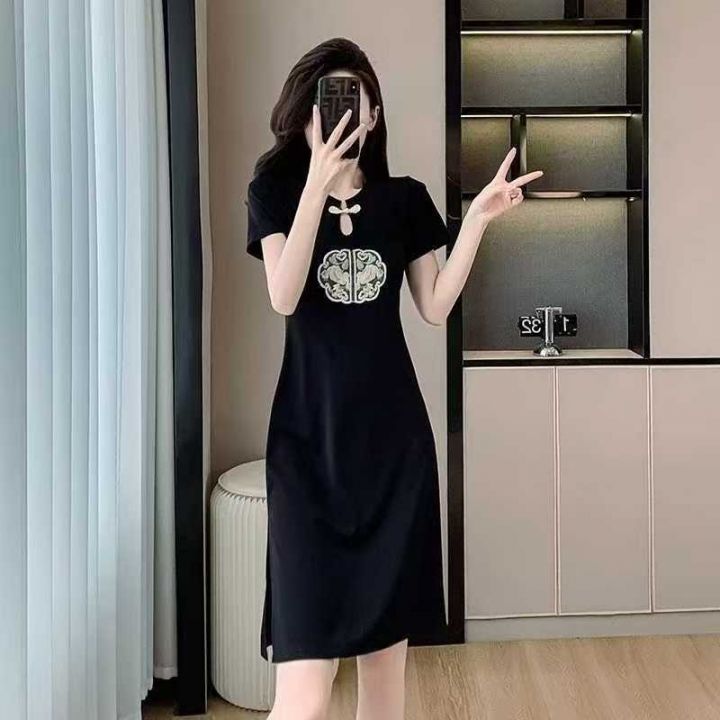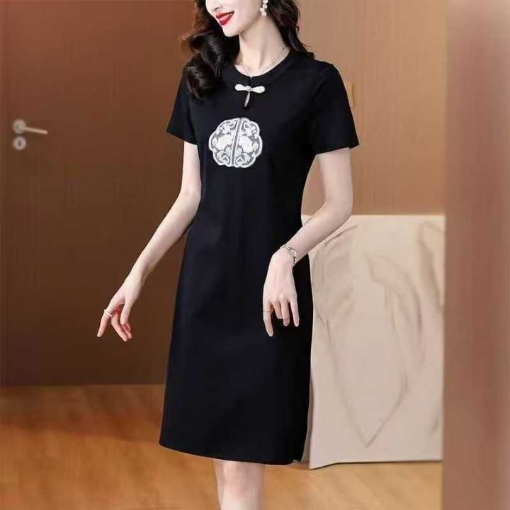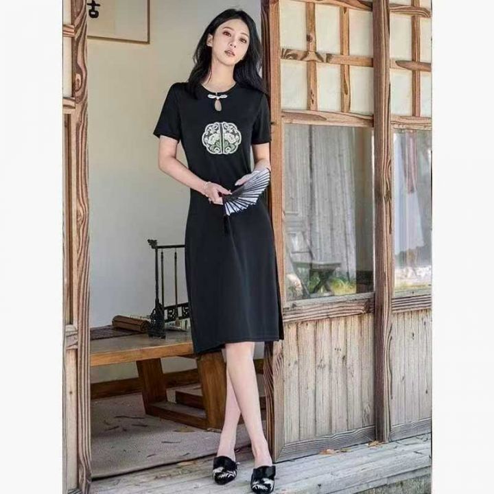 时尚休闲连衣裙女中长款2025年春夏显瘦百搭国风盘扣连...