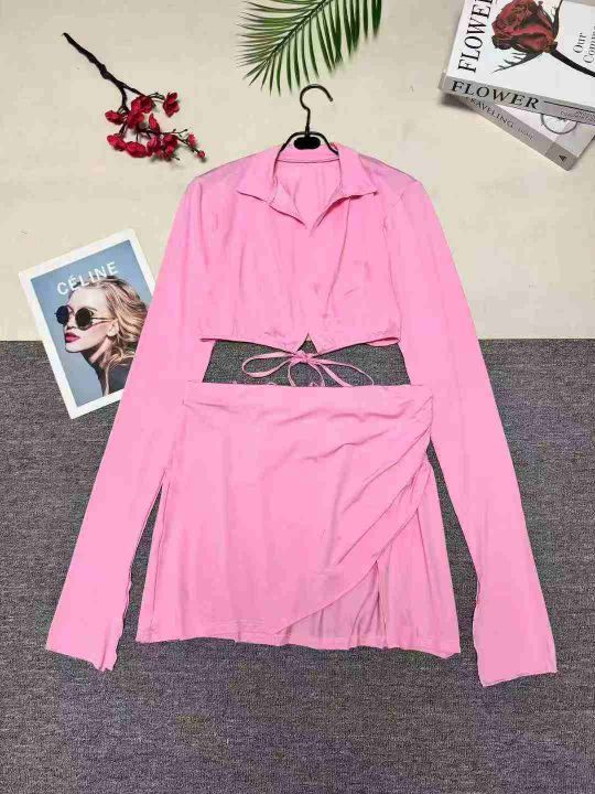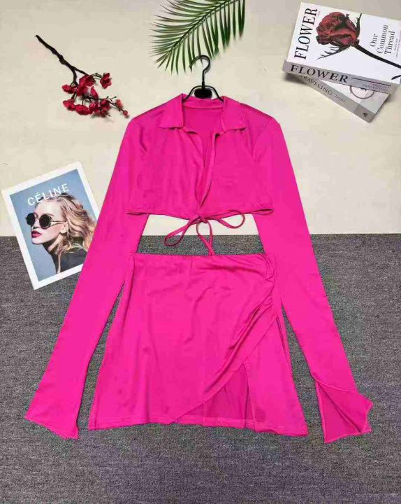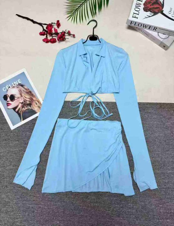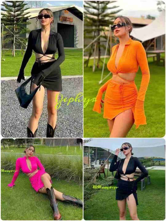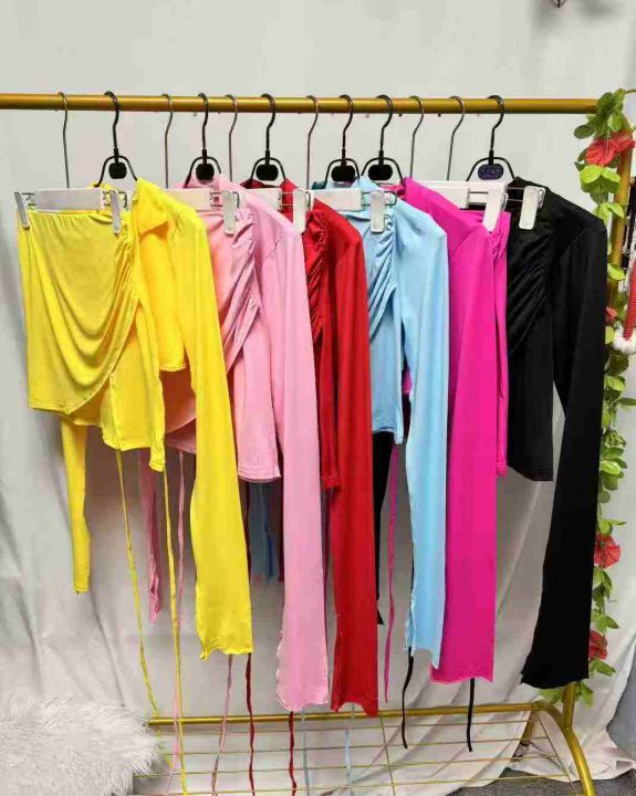欧美辣妹露脐短上衣+开衩迷你小短裙套装,整款多色,数量:132套,码数:S-2XL,品质好,有独立包装。。 货号:24862