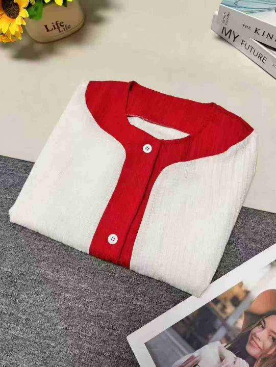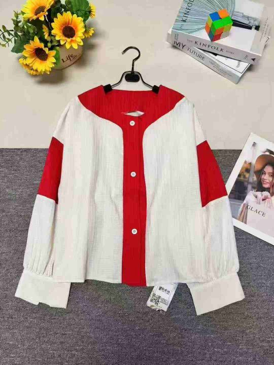 高级感别致红白撞色灯笼袖网红款雪纺衬衫,单款单色,品质好,有独立包装带吊牌,码数S- XL,数量380件左右,全清7.8元秒,分货➕1。