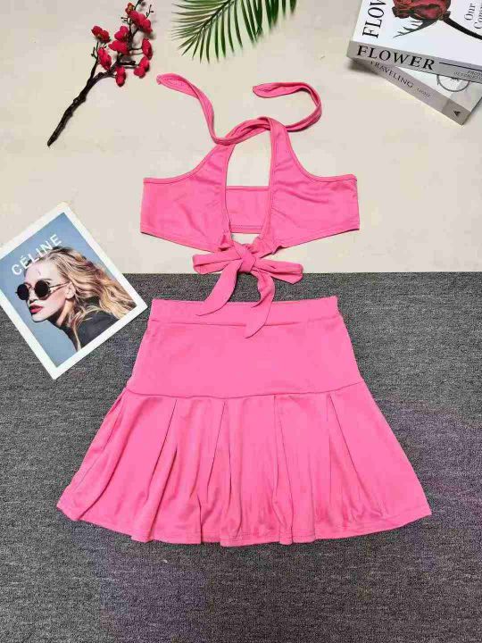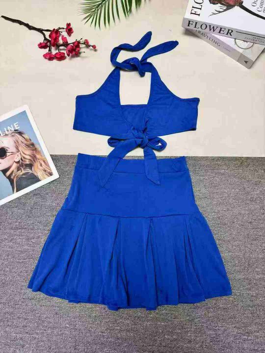 欧美时尚辣妹挂脖绑带性感两件套,整款四色,数量326套,码数:S-2XL,品质好,有独立包装。。 货号:24862