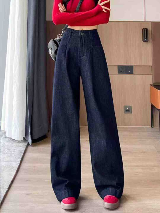 秋冬新款洗水棉牛仔直筒阔腿裤,工厂新货无包装,货品...