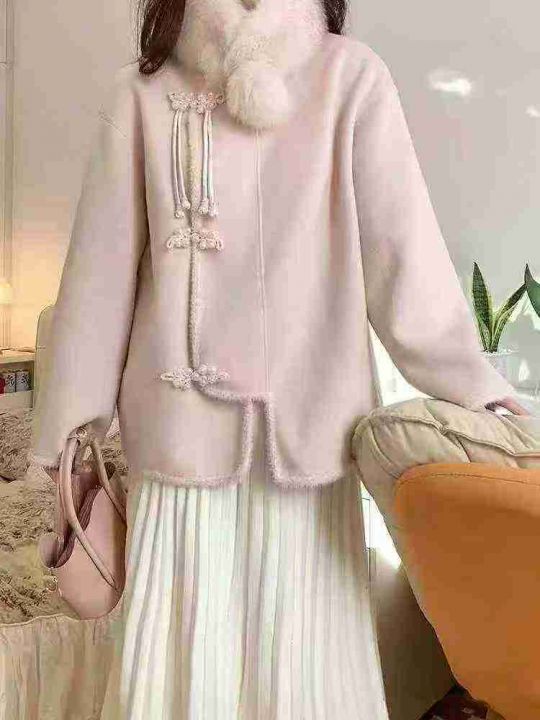 90件2025秋冬新中式粉色双面呢高级感复古短款毛呢外套...