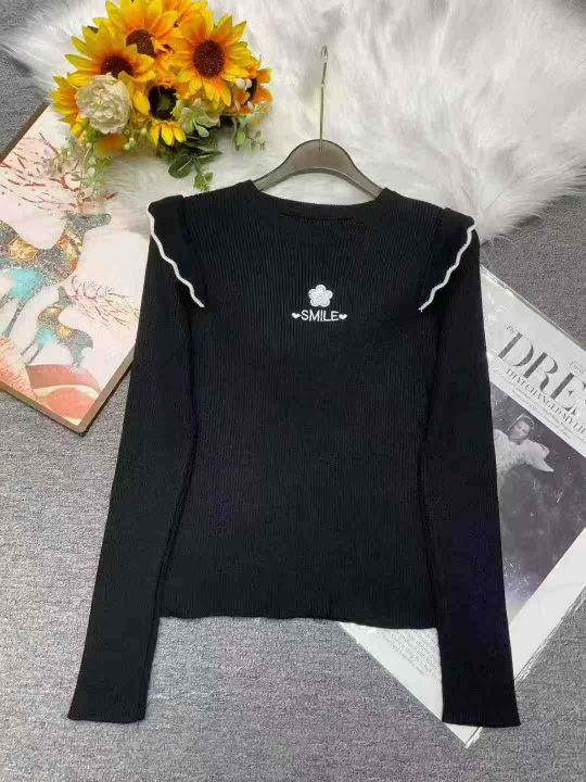 秋冬新款复古港味荷叶边弹力修身刺绣套头毛衣,独立包装均码面料柔软舒适弹力大,118件,全清6.9元超低价秒杀!