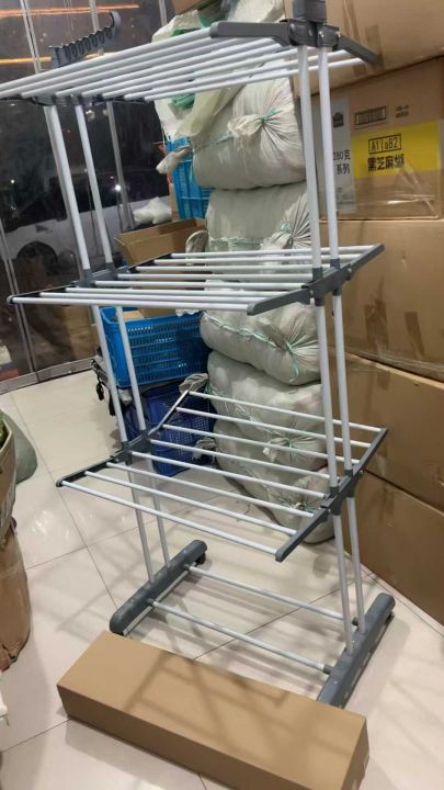 晾衣架每件6个,每个盒3.5公斤,晒衣架可折叠 铁喷漆落地推拉晾衣架 多功能三层毛巾架阳台晾晒架,1000件